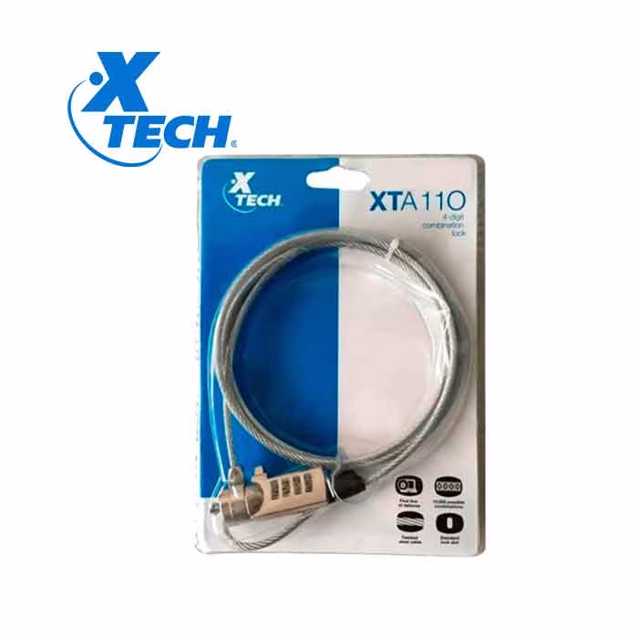 – Tipo: Cable de seguridad con combinación de 4 dígitos para laptops XTA-110