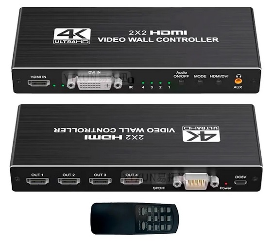 CONTROLADOR VIDEO WALL HDMI/DVI 4K, AUDIO SPDIF, 2X2 1X2 1X3 1X4 2X1 3×1 4X1 + RS232 + CONTROL REMOTO