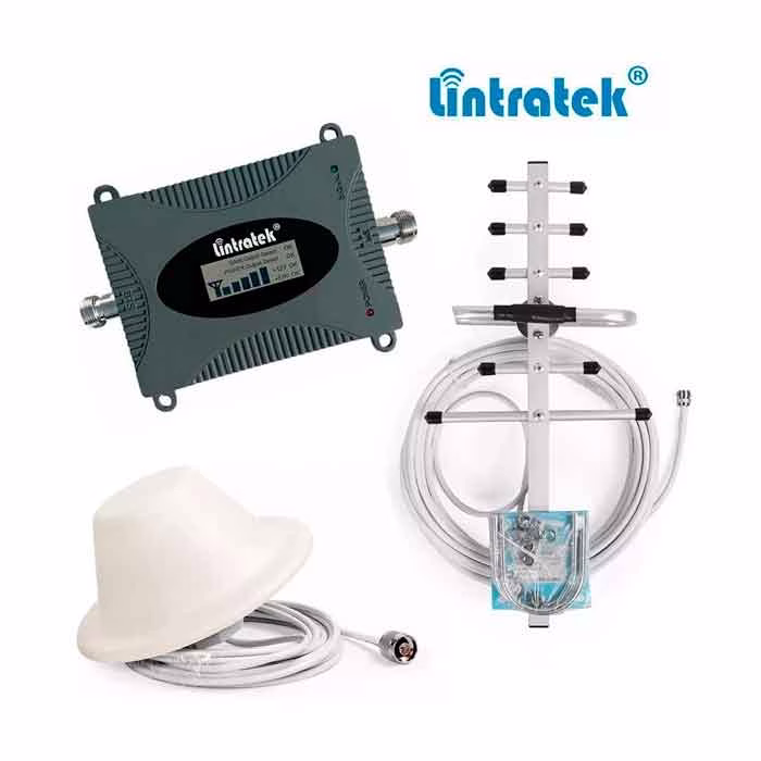 KIT AMPLIFICADOR SEÑAL CELULAR LINTRATEK KW16L-CDMA LCD BANDA 850MHz 3G 65dB + ANTENA OUT. 8dBi CABLE 10m + ANTENA IND. OMNI 5dBi 5m CABLE