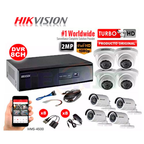 KIT DE VIDEO VIGILANCIA HIKVISION TURBO HD 8 CAMARAS 1080P + ACCESORIOS