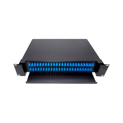 Rackeable de 48 puertos SC/UPC ofrece una solución robusta y organizada para la terminación y empalme de fibra en racks 19″ (2U). Incluye adaptadores SC/UPC, pigtails, bandeja de fusión deslizante y tubillos protectores, ideal para instalaciones empresariales con alta densidad de fibra.