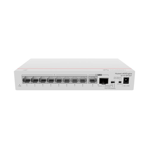 SWITCH HUAWEI eKIT S110-8P2ST DE 8 PUERTOS GIGABIT PoE+ 124W + 1 PUERTOS GIGABIT O SFP DESKTOP