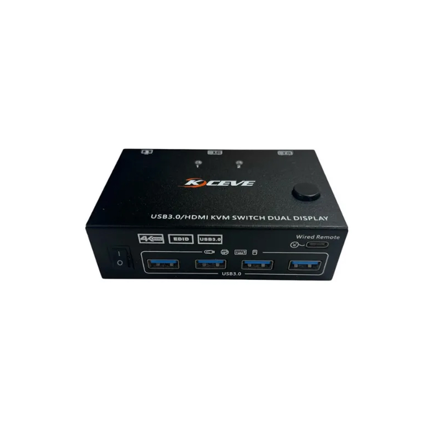 SWITCH KVM KCEVE KC-KVM202AS DE 2 PUERTOS HDMI 4K60HZ, 6XUSB3.0, SALIDA HDMI + SET CABLES